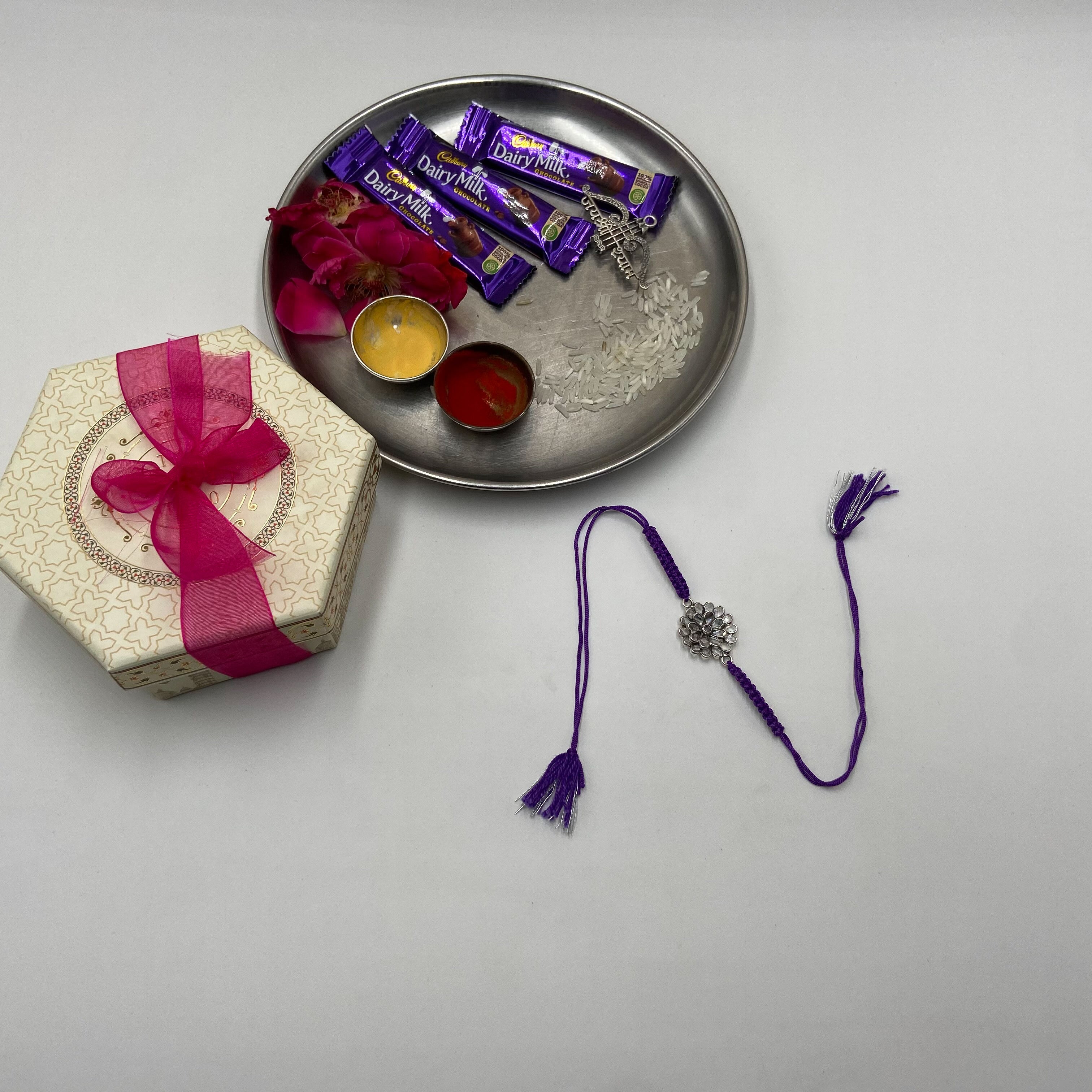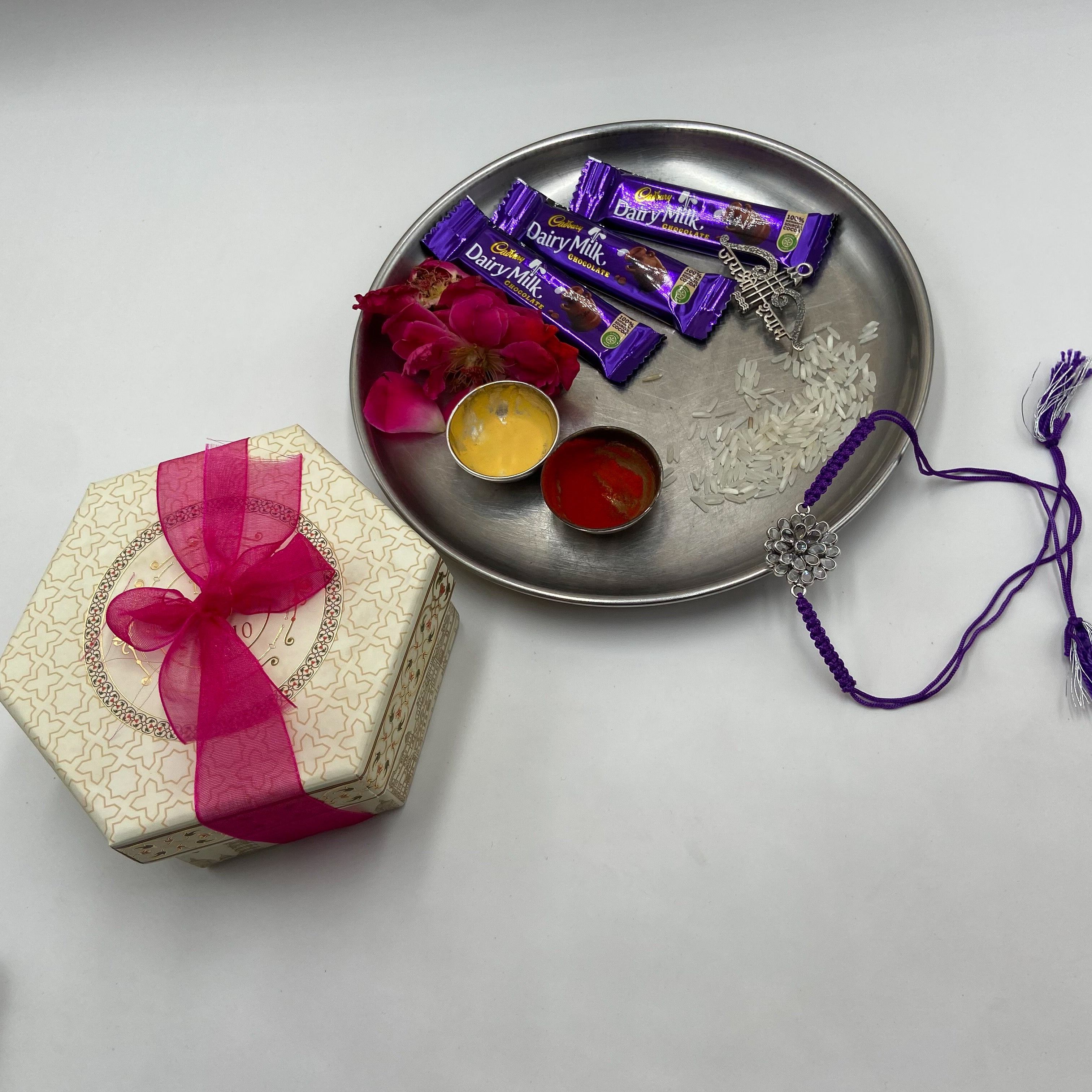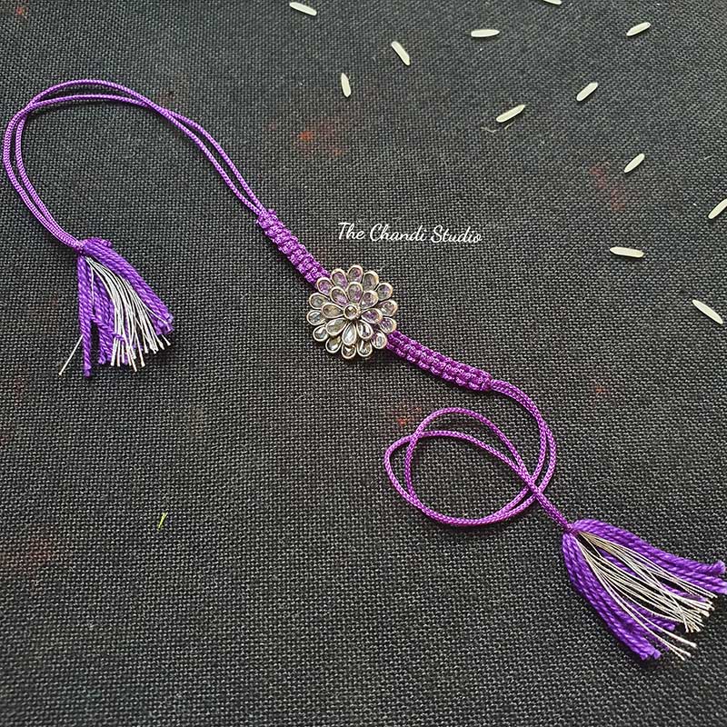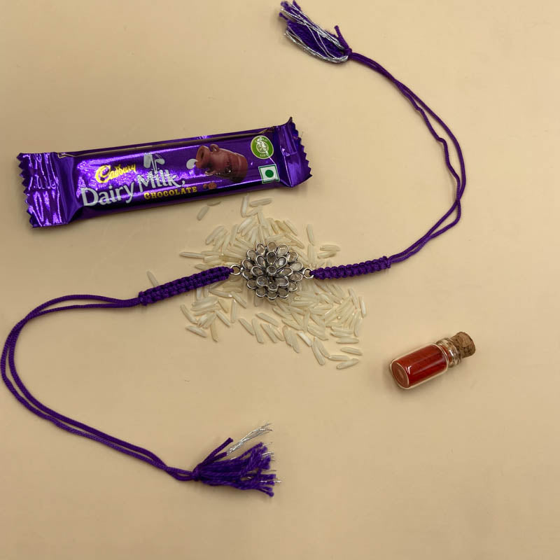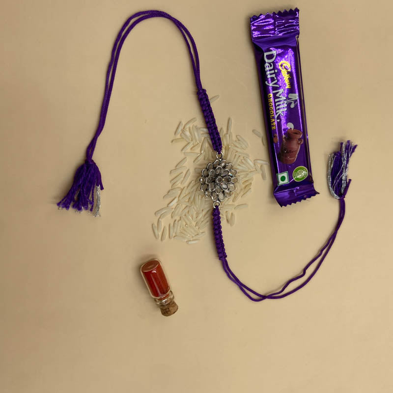 Celebrate the bond of love with the Sterling Silver Floral Grace Rakhi Handcrafted in 92.5 silver, it features an elegant design symbolizing purity, protection, and timeless sibling connection.