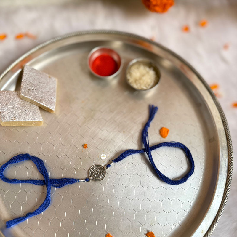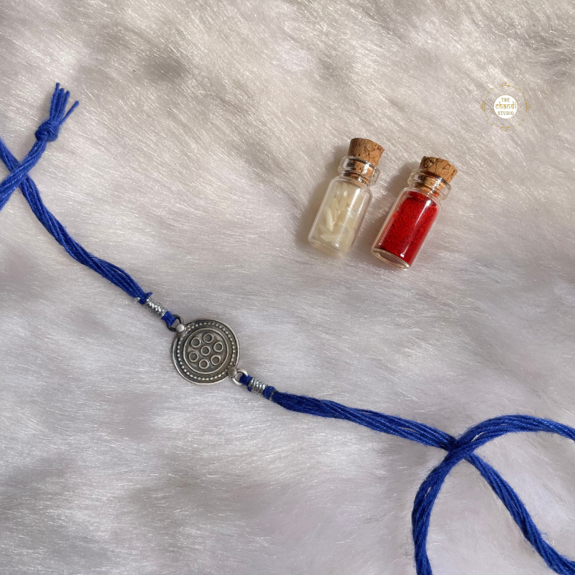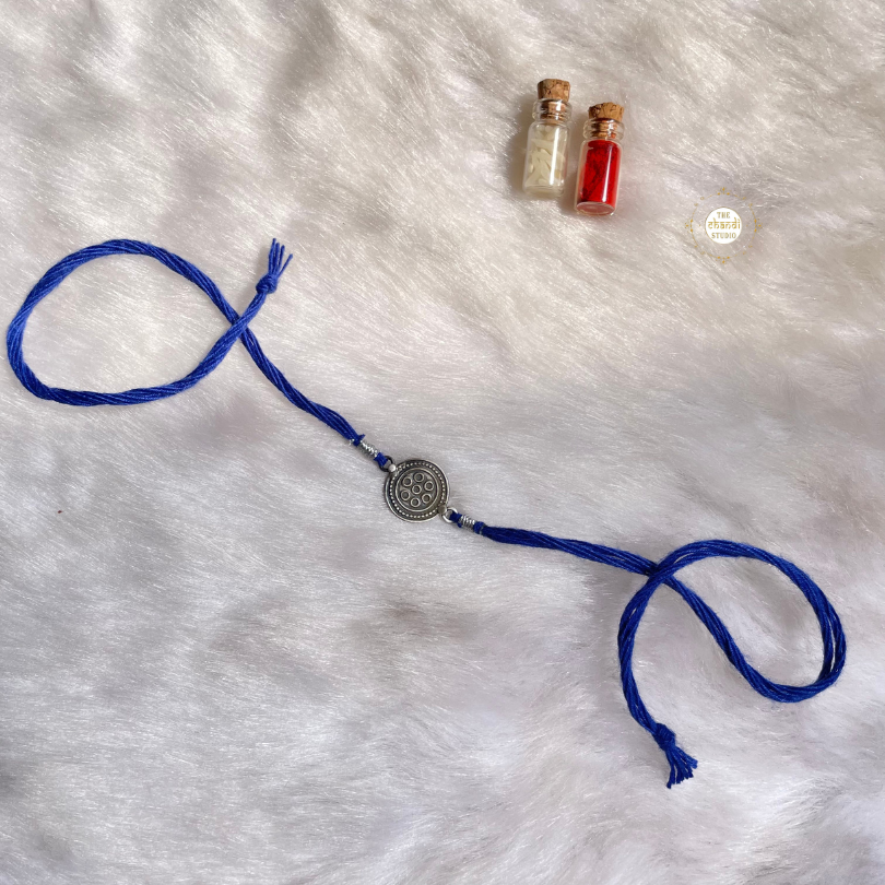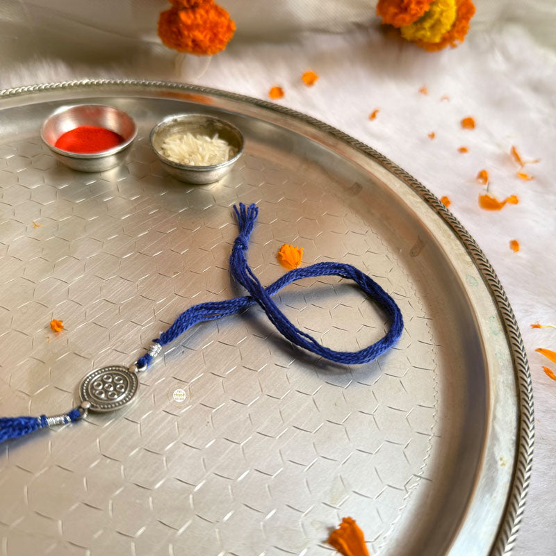 Celebrate the bond of love with the Sterling Silver Floral Grace Rakhi Handcrafted in 92.5 silver, it features an elegant design symbolizing purity, protection, and timeless sibling connection.