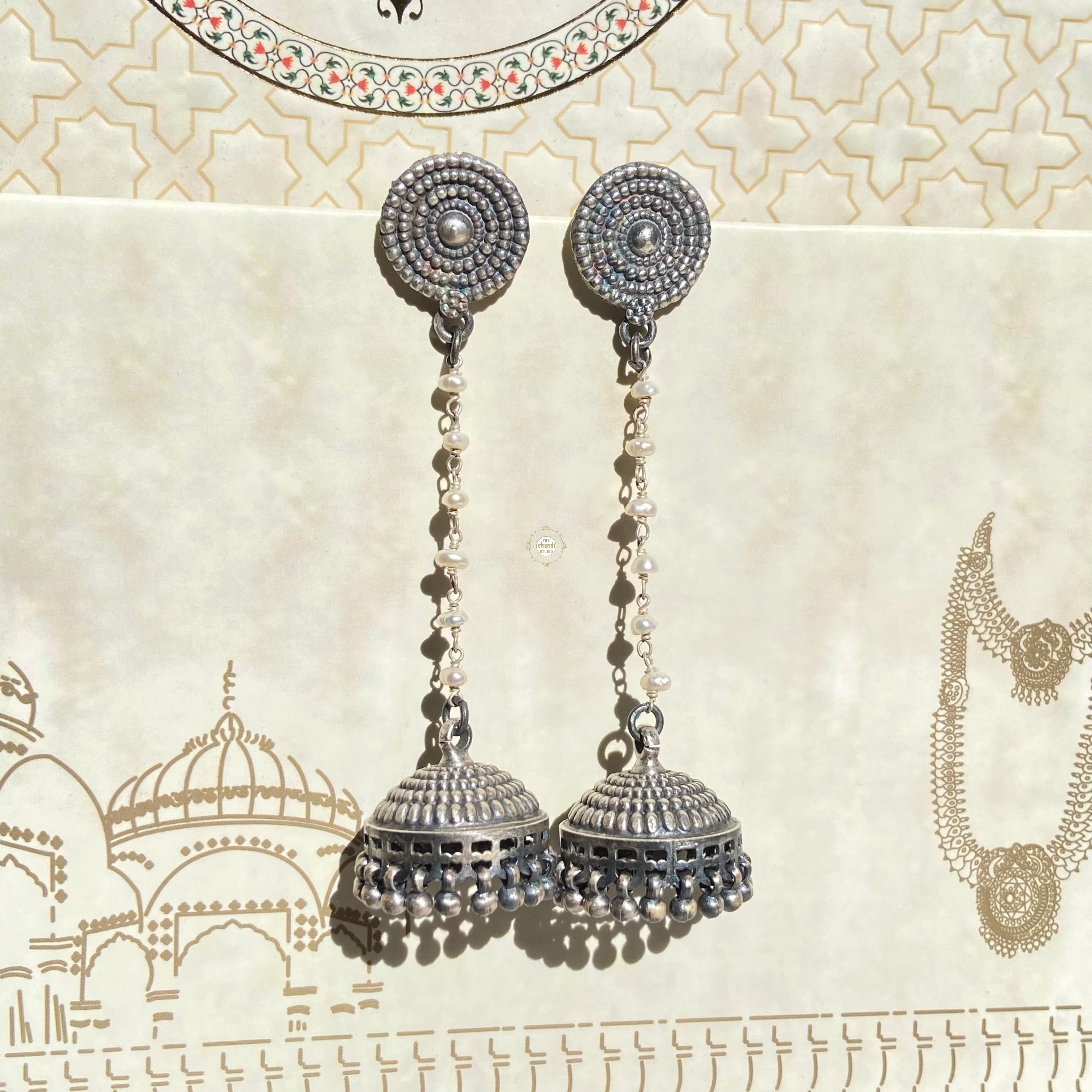 Celebrate timeless elegance with our Sterling Silver Riwaayat Jhumki, featuring intricate craftsmanship and a graceful drop design. Perfect for festive occasions, weddings, or everyday ethnic charm. Shine effortlessly!