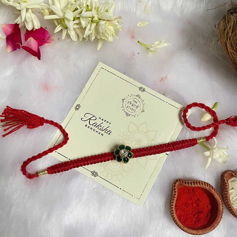 Celebrate the bond of love with the Sterling Silver Floral Grace Rakhi Handcrafted in 92.5 silver, it features an elegant design symbolizing purity, protection, and timeless sibling connection.
