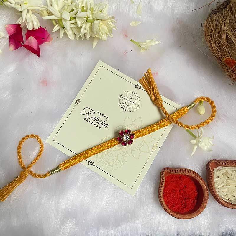 Celebrate the bond of love with the Sterling Silver Floral Grace Rakhi Handcrafted in 92.5 silver, it features an elegant design symbolizing purity, protection, and timeless sibling connection.