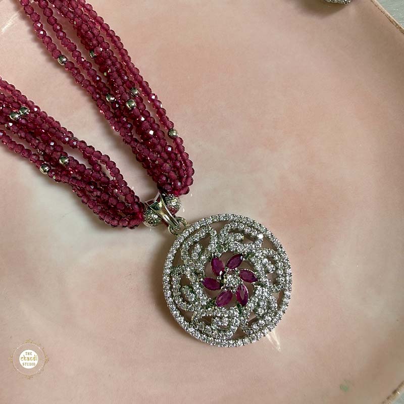 Elevate your style with the Sterling Silver Sparkling Mystic Ruby Blossom Necklace with Earring crafted in premium sterling silver with dazzling stones. Perfect for special occasions, this elegant set adds timeless charm and sophistication to any outfit