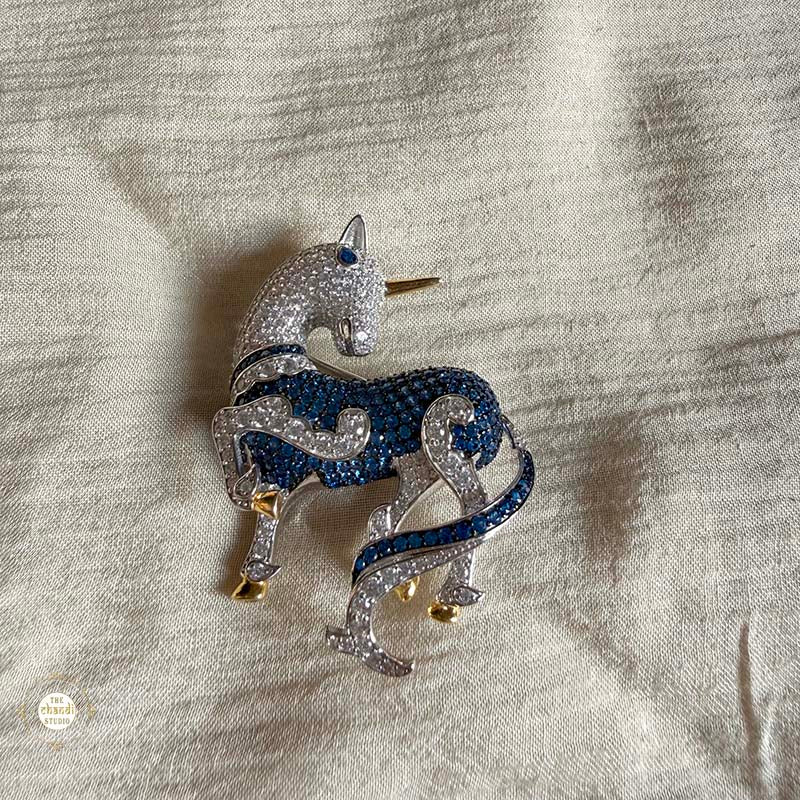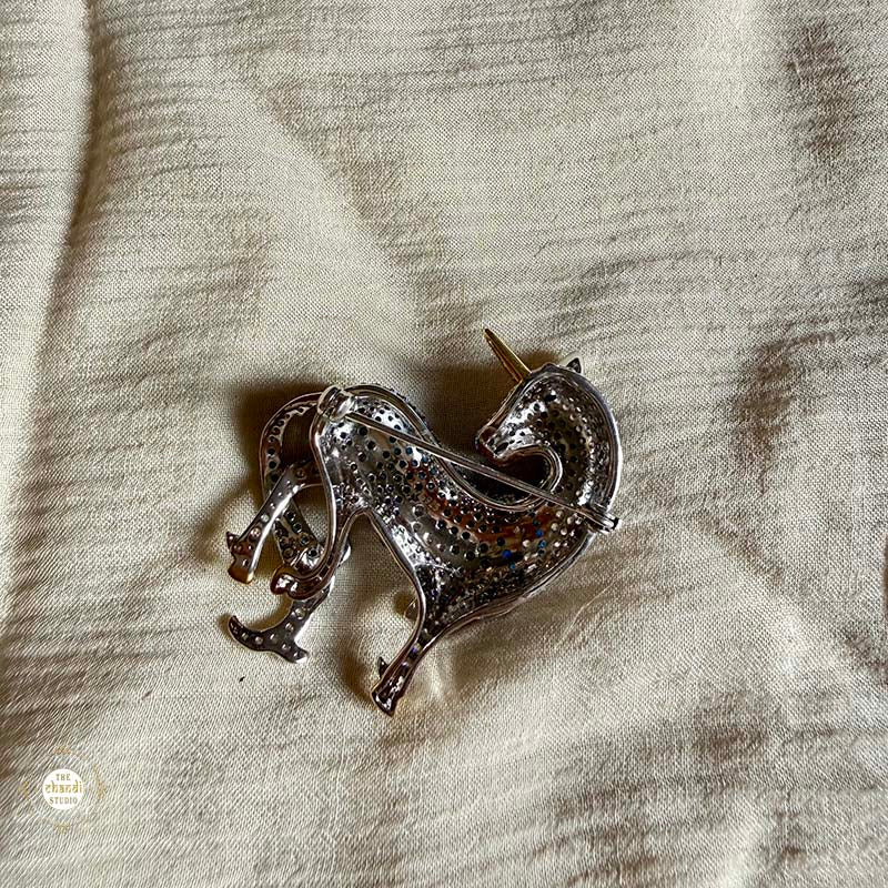 Sterling Silver Sparkling Silver Unicorn Brooch