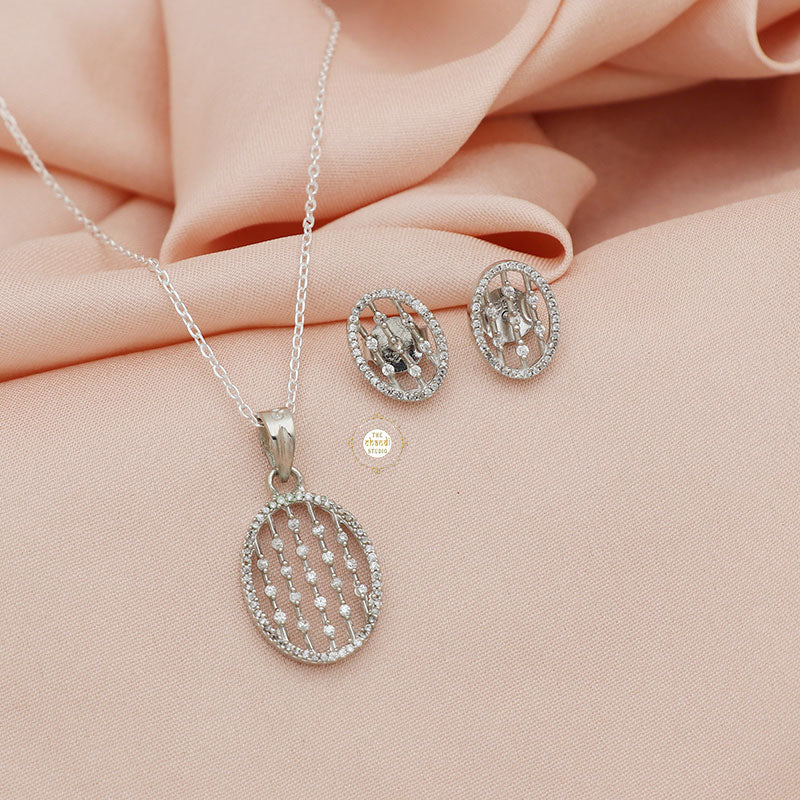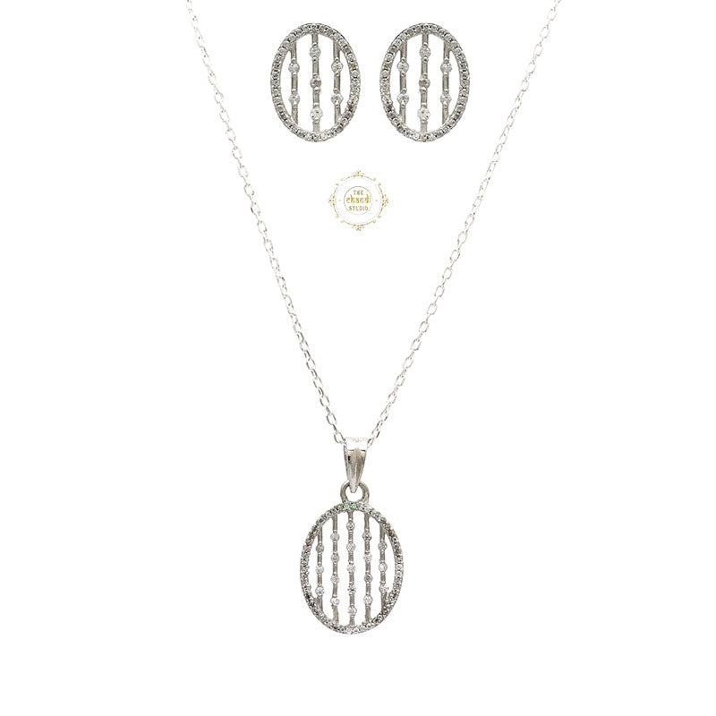 Sterling Silver Sparkling Treasure Oval Necklace Set