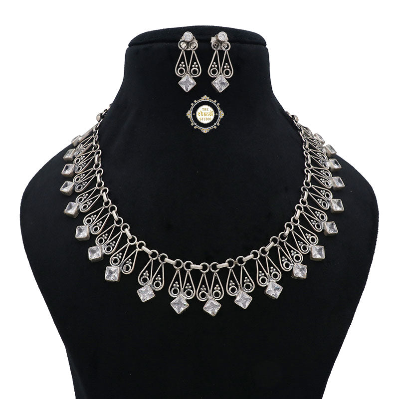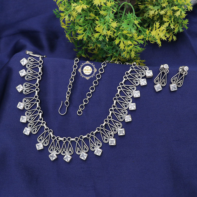 Sterling Silver Splendid Zircon Stone Tilak Necklace Set