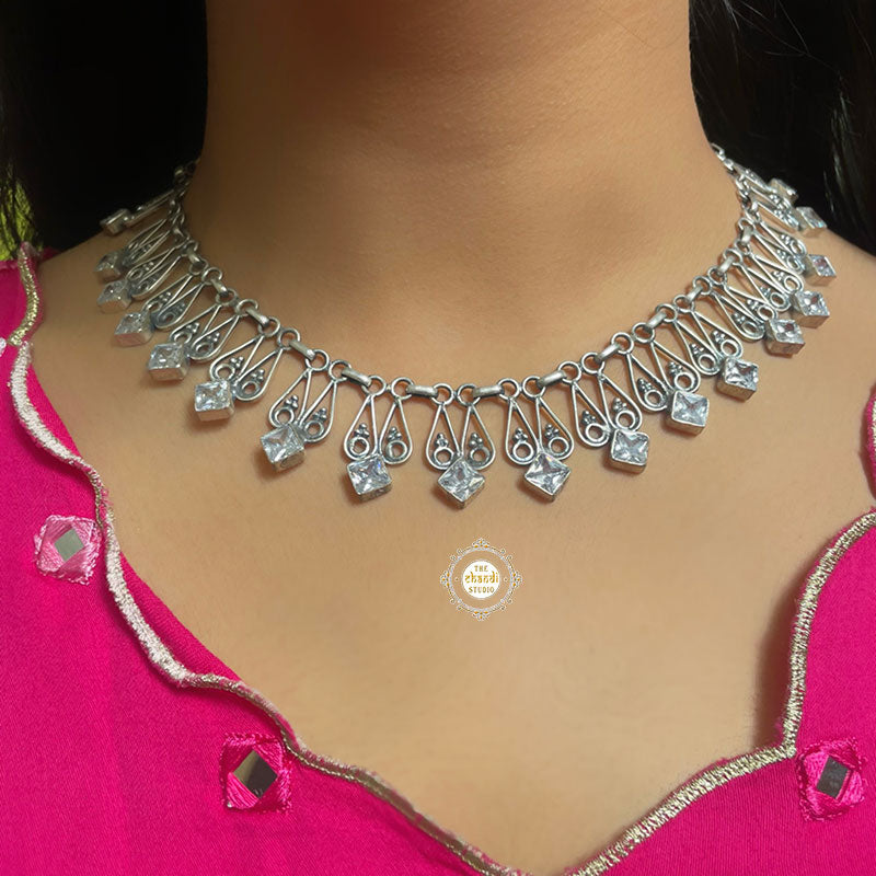 A modest neck piece has always been a timeless piece of refinement, every women’s best friend, and a go-to fashion accessory. Whether you are a jewelry fanatic or not, this necklace from our studio will make you fall in love with simple and aesthetic jewelry pieces. The elegance of this piece will make it effortless for you to harmonize them with any ensemble in your closet. From regular office and business meetings to weekend meet ups and date nights, this will be your best friend, beautifully and gracefully. *Price is inclusive of the earring. MATERIAL : STERLING SILVER 92.5