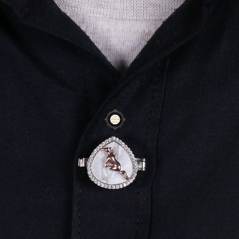 Elevate your style effortlessly with our  Sterling Silver Running Horse Button Clip. This circular accessory, adorned with a graceful running horse motif, adds a touch of sophistication to any outfit. Easy to attach and impeccably designed, it's the perfect blend of style and simplicity. Upgrade your look with Sterling Silver Running Horse Button Clip today. .Material – Sterling Silver 92.5