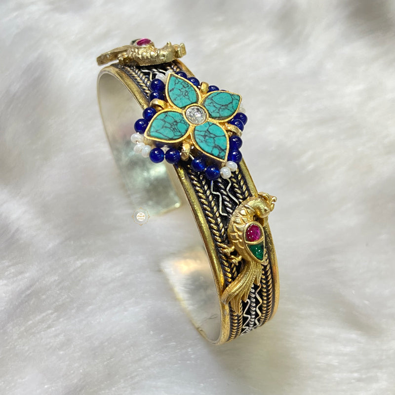 The Sterling Silver Turquoise Kada (Single Piece) is crafted in 92.5 silver with a striking turquoise stone. A perfect blend of tradition and style, adding elegance and uniqueness to every look.