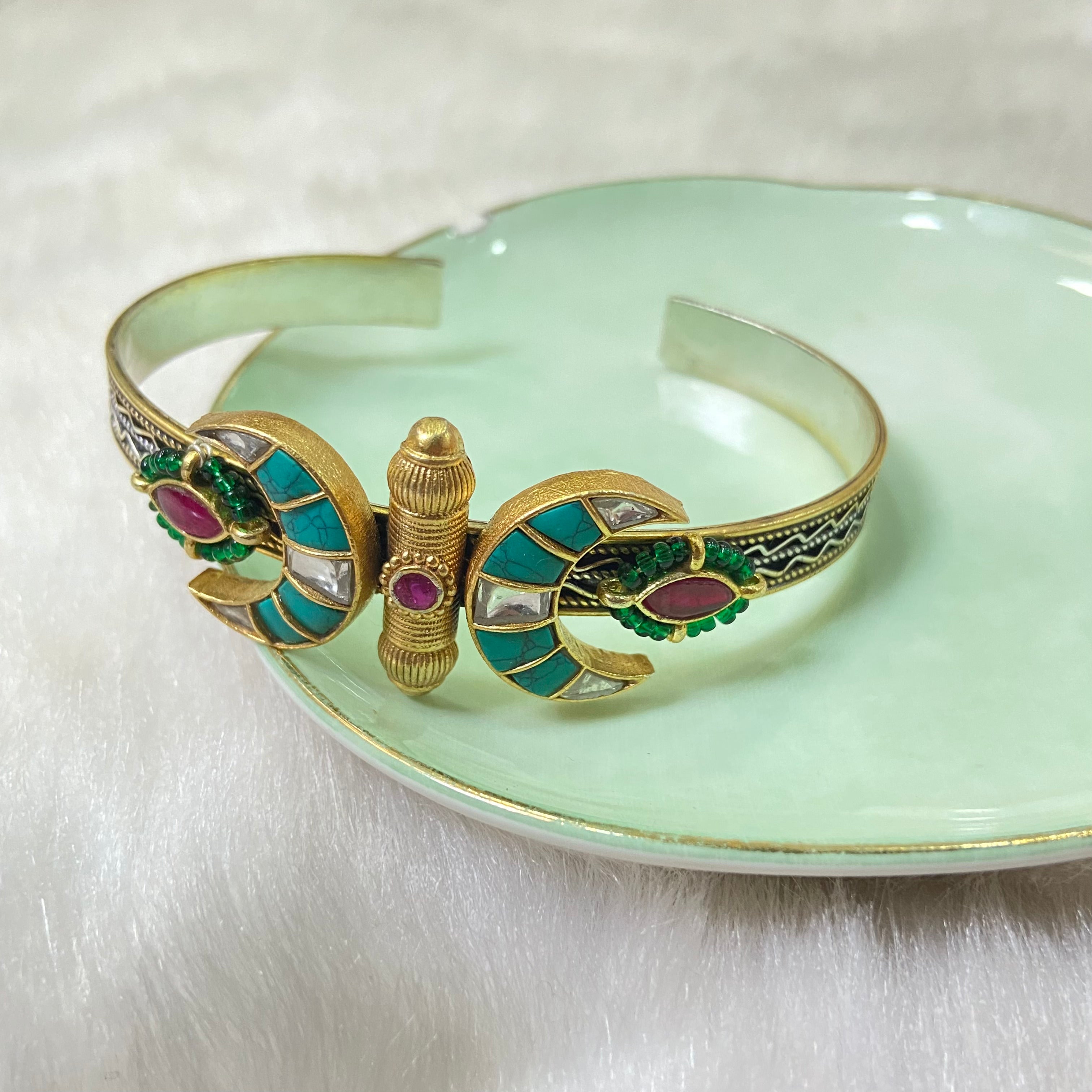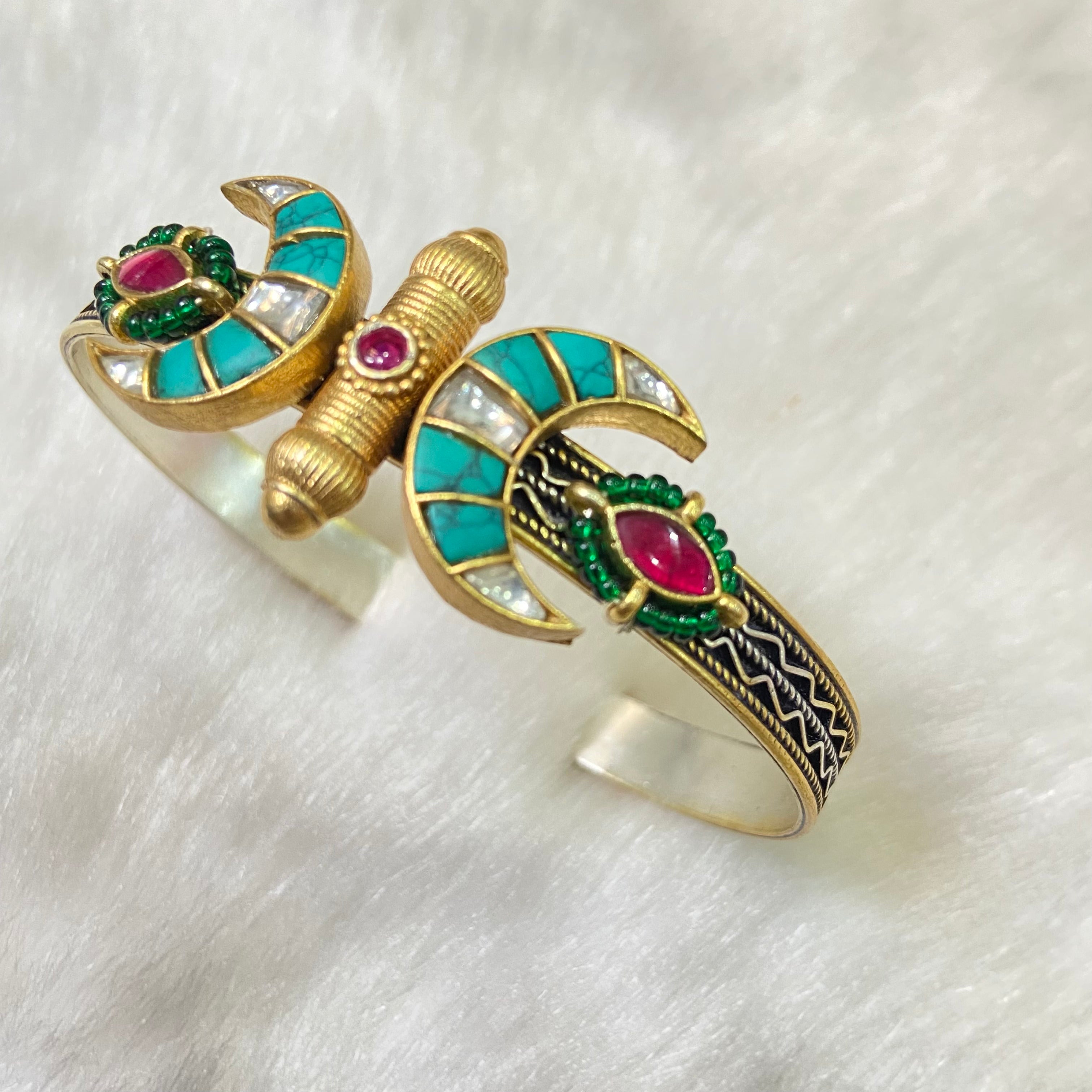 The Sterling Silver Feroza Phool Kada (Single Piece) is crafted in 92.5 silver with a striking turquoise stone. A perfect blend of tradition and style, adding elegance and uniqueness to every look.