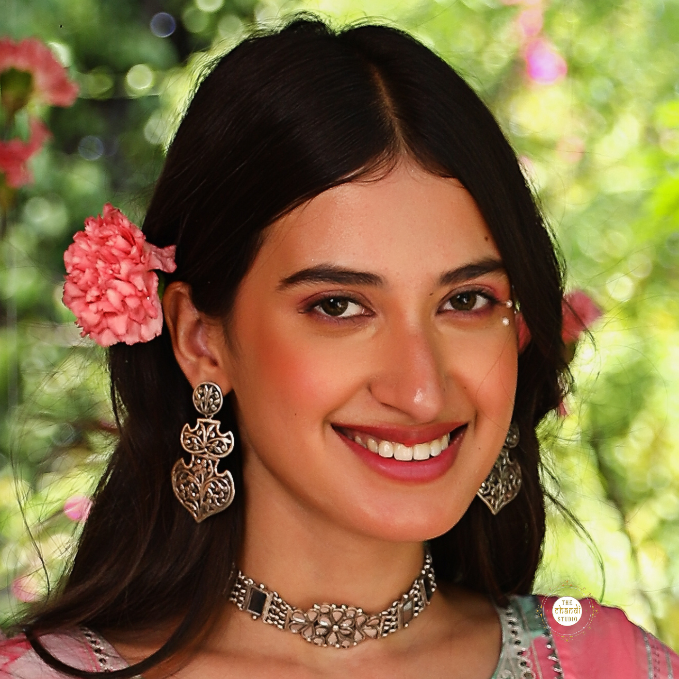 Celebrate timeless beauty with the Sterling Silver Utsav Chitai Earring. Handcrafted in 92.5 silver with detailed chitai work, it’s perfect for festive occasions and adds elegance to ethnic outfits.