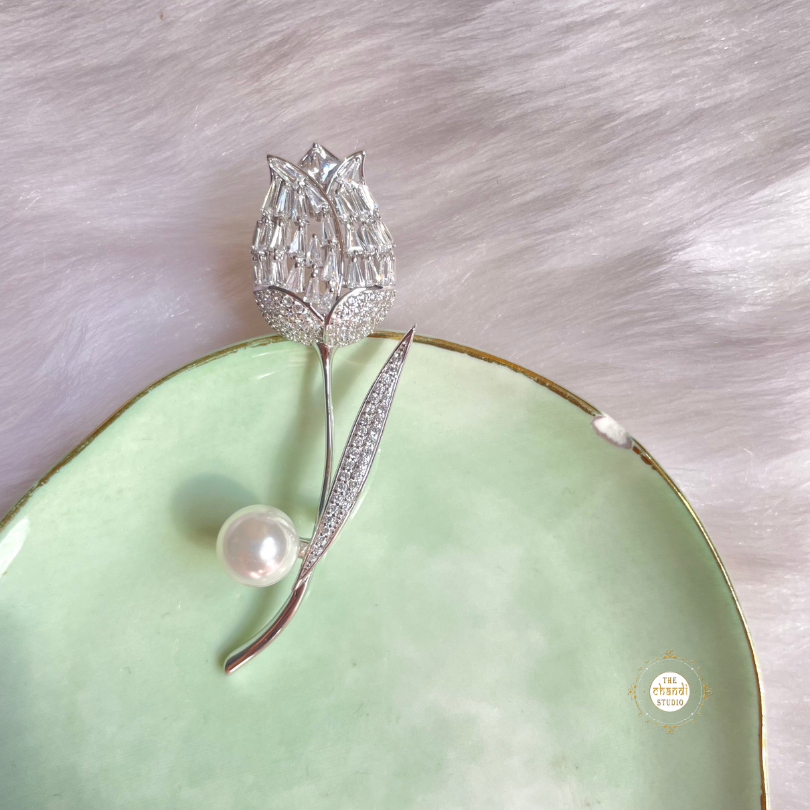 This stunning piece features a delicate lotus design crafted in shimmering silver, adorned with luminous pearls and sparkling accents. Elevate your style effortlessly!