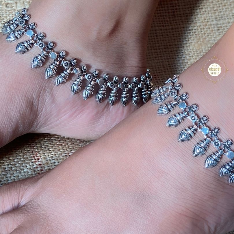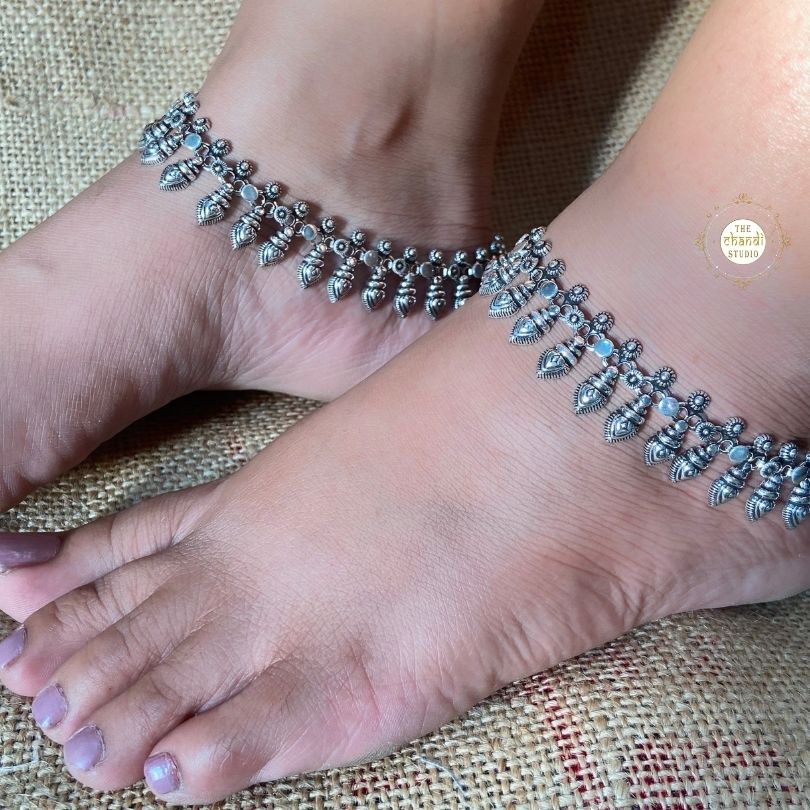 The Paisley Anklet features elegant paisley-inspired silver charms, beautifully crafted to enhance your style. This delicate piece adds a touch of sophistication and is perfect for daily wear or special occasions.
