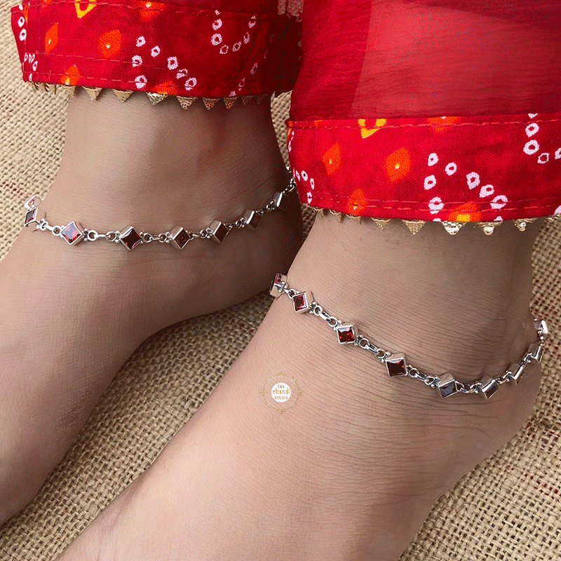 The Garnet Stone Anklet features delicate stones set in a shimmering silver chain, adding an enchanting touch to your look. Perfect for any occasion, it brings elegance and subtle sparkle to your style.
