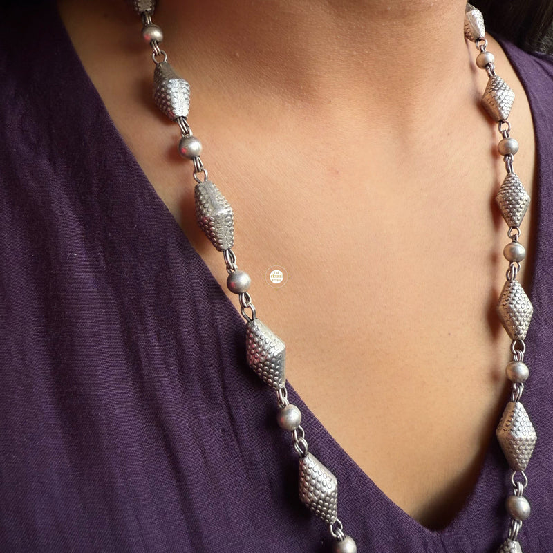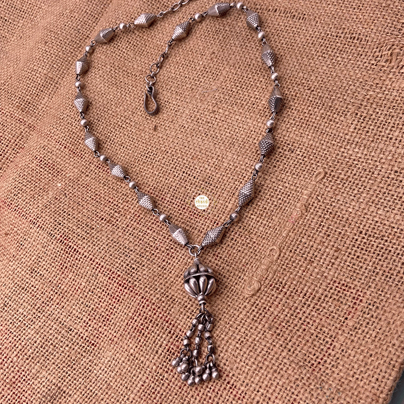 Elevate your style with the Timeless Tassel Necklace, featuring intricate silver detailing and elegant tassels. Perfect for casual or festive occasions, this statement piece adds a touch of sophistication to any outfit.