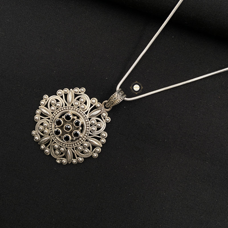 Discover elegance with the Blooming Floral Stone Pendant. This beautifully designed accessory features intricate floral details and a vibrant stone, perfect for adding a touch of charm to any outfit. * MATERIAL : STERLING SILVER 92.5 * Price mentioned only for pendant