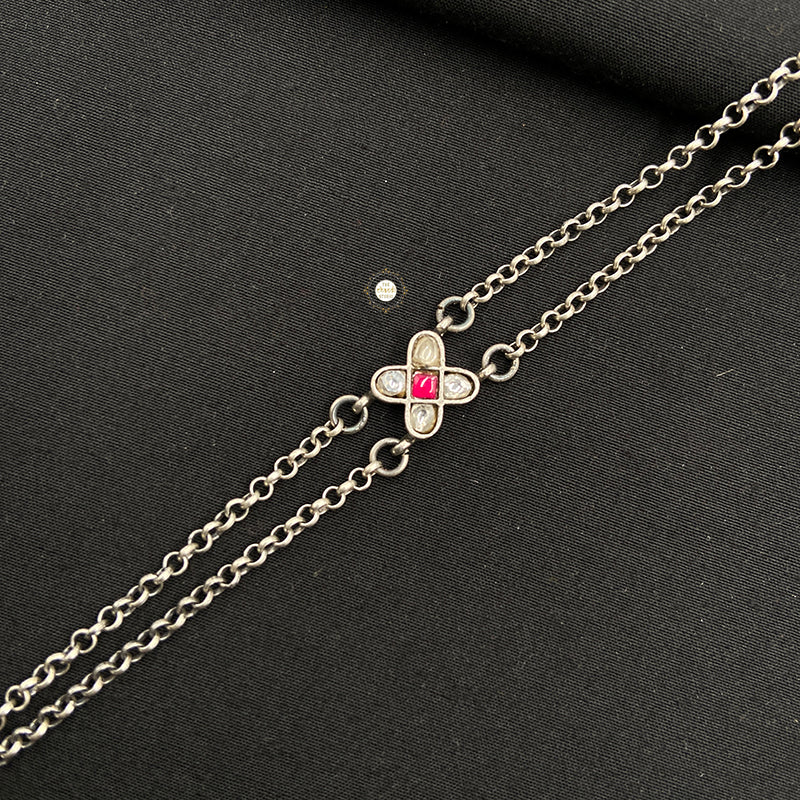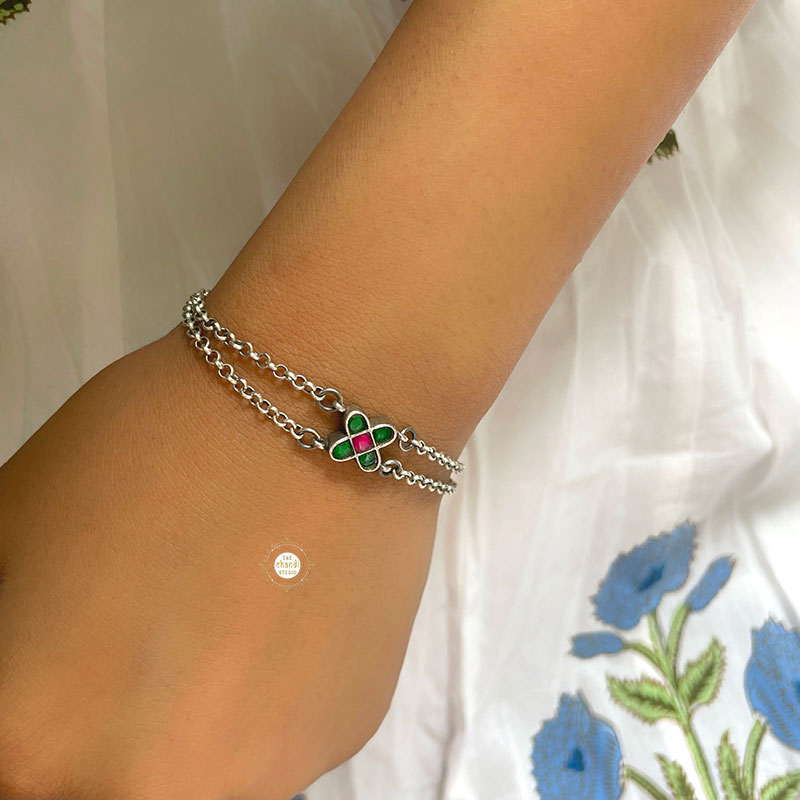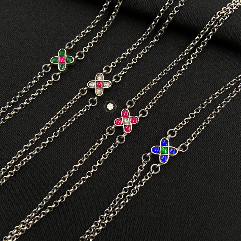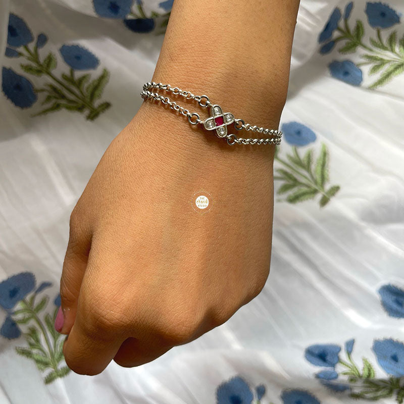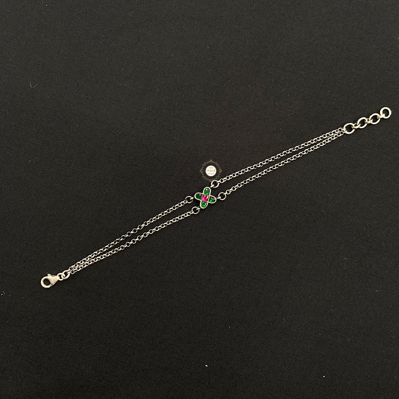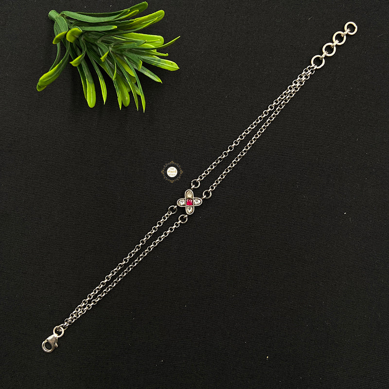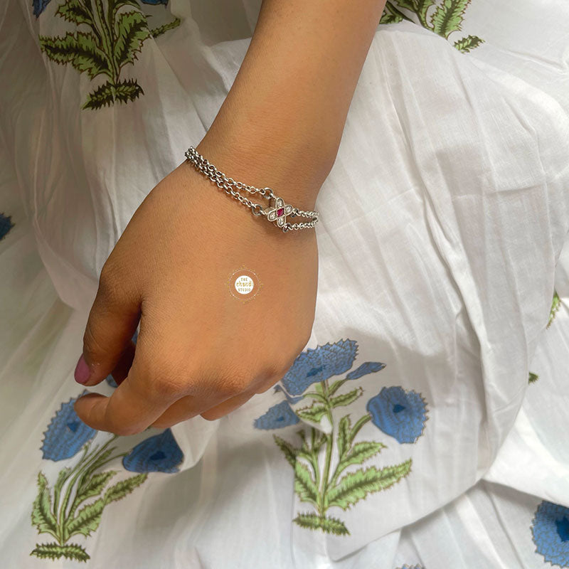 Embrace timeless beauty with the Minimal Kundan Floral Bracelet. Featuring delicate floral motifs and exquisite Kundan detailing, this elegant accessory adds a touch of sophistication to any outfit, perfect for every occasion