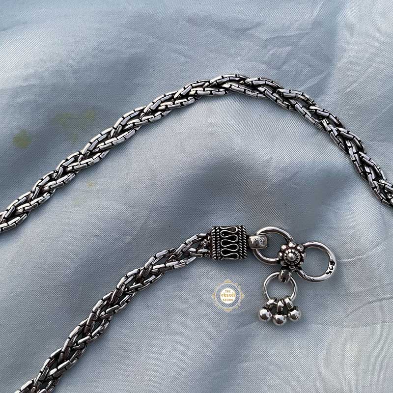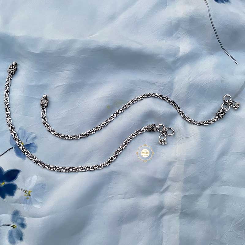 Utsav Braid Anklet This gorgeous sturdy anklet is made up of three chains that interlink & entwine each other to become one sturdy rope chain. Subtle & sophisticated. LENGTH : 10.5 inches   * Price mentioned is for a Pair. * Material – Sterling Silver 925