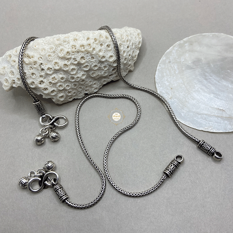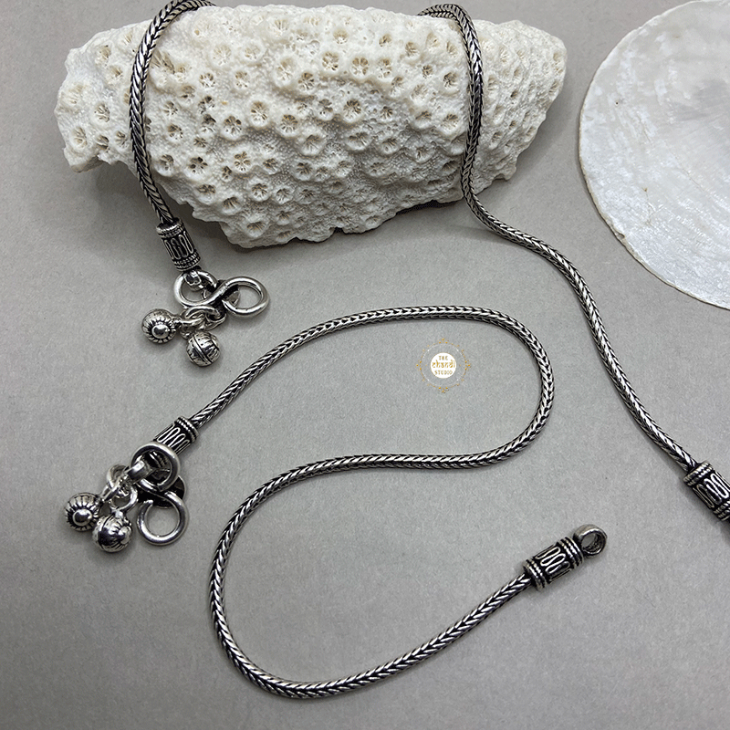 Utsav Braid Anklet   This gorgeous sturdy anklet is made up of three chains that interlink & entwine each other to become one sturdy rope chain. Subtle & sophisticated.   * Price mentioned is for a pair of anklets ( 2 pieces). * LENGTH : 10.5 inches * MATERIAL : STERLING SILVER 92.5