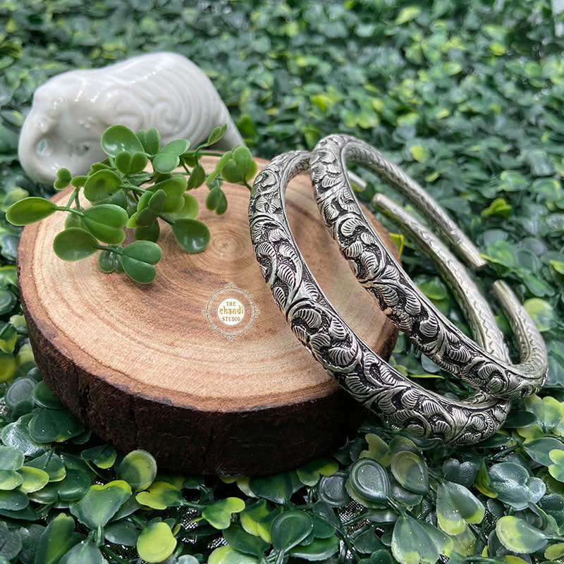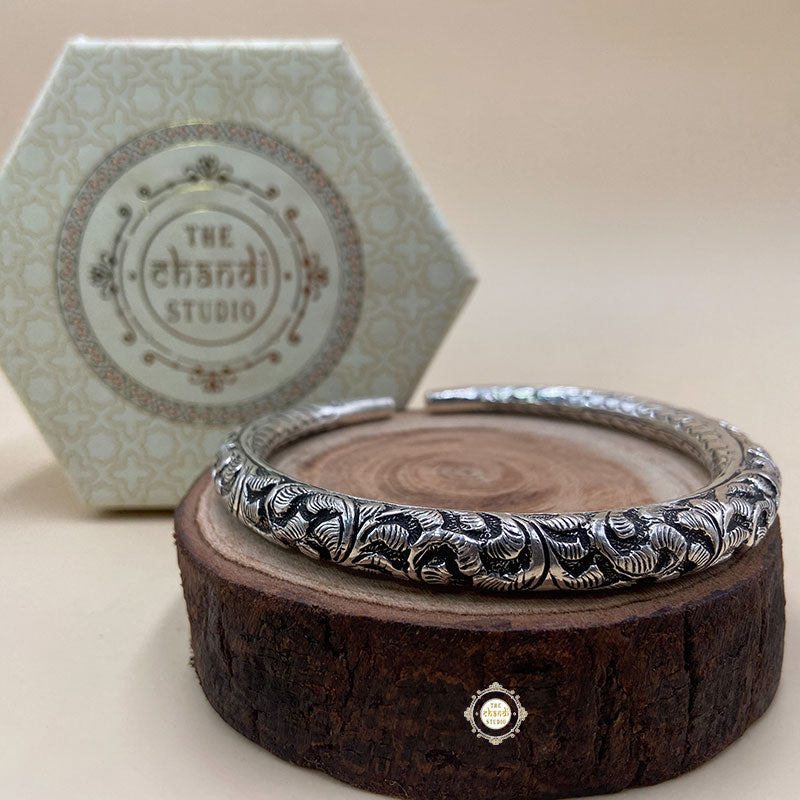 Utsav Chitai Leg Kada is a traditional Indian ankle accessory. There is always a different kind of attraction in things that are sonorous. Inspired by the ancient kadas worn by women to adore their feet, these beautifully carved anklet kadas are manifested in silver to give their hardworking feet a regal touch with colors of elegance. The mesmerizing memories of going through the festivities in this kadas will always make you like them, a bit more. And smile a lot more. MATERIAL : STERLING SILVER 92.5