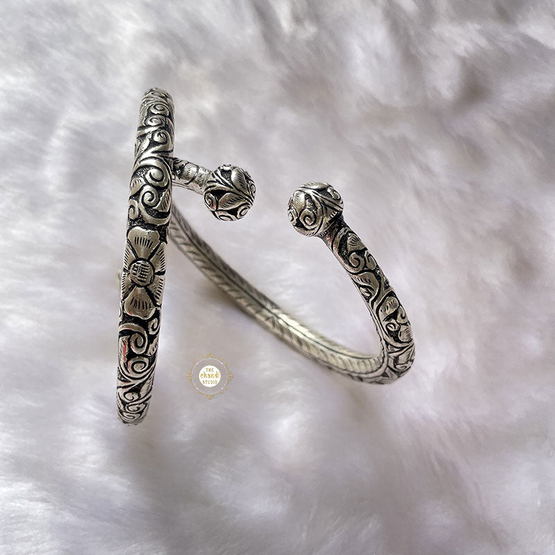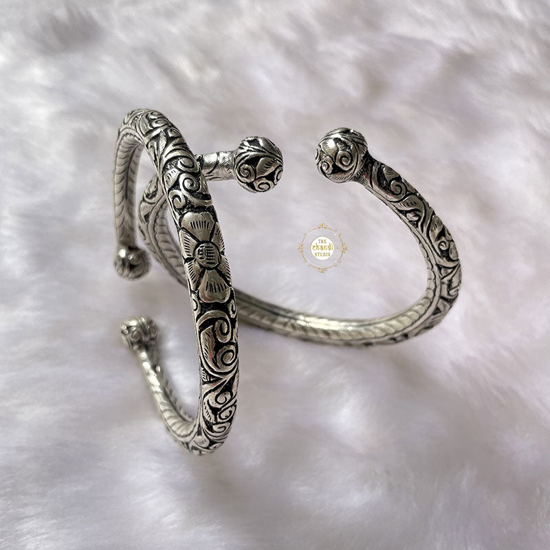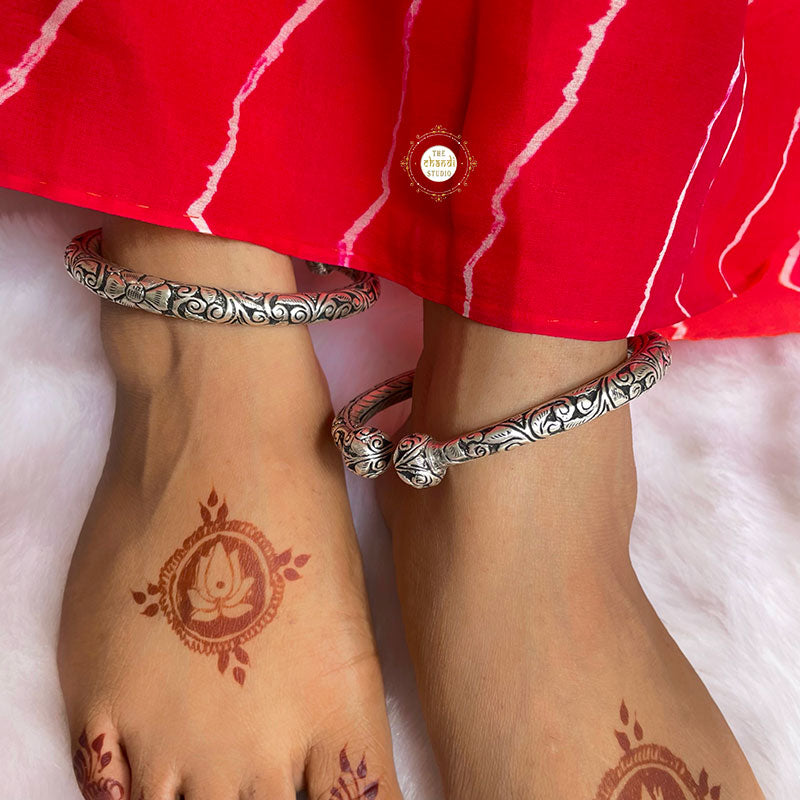 This Utsav Chitai Leg Kada reminds you of your grandmother running after you for feeding a morsel of rice.   The melodic tinkling and jingling of this kada is reminiscent of the nostalgic days with your grandma's stories and memories.   Pair it with embroidered long skirts and mulmul kurta sets and be the princess in your grandma's eyes.   * MATERIAL : STERLING SILVER 92.5 * Price mentioned is for a single piece.