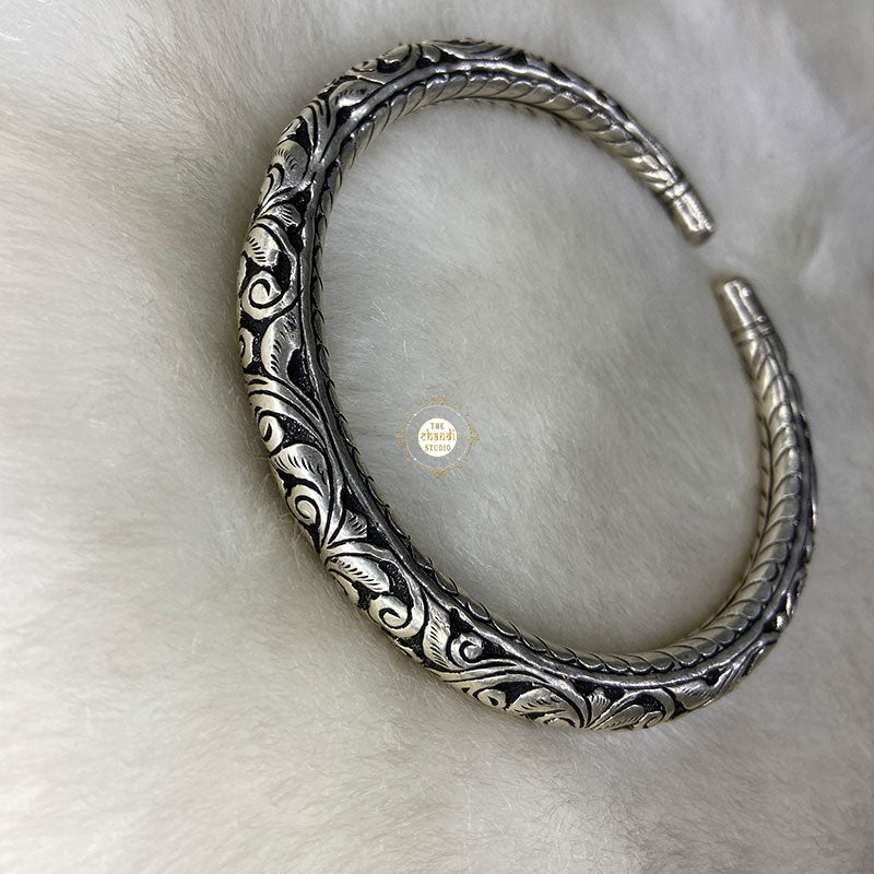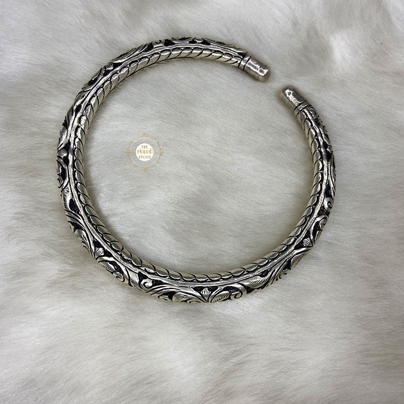This Utsav Chitai Leg Kada reminds you of your grandmother running after you for feeding a morsel of rice. The melodic tinkling and jingling of this kada is reminiscent of the nostalgic days with your grandma's stories and memories. Pair it with embroidered long skirts and mulmul kurta sets and be the princess in your grandma's eyes. MATERIAL : STERLING SILVER 92.5