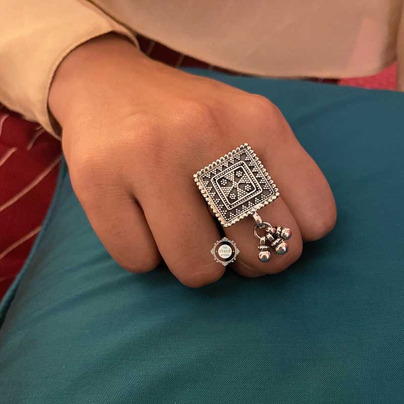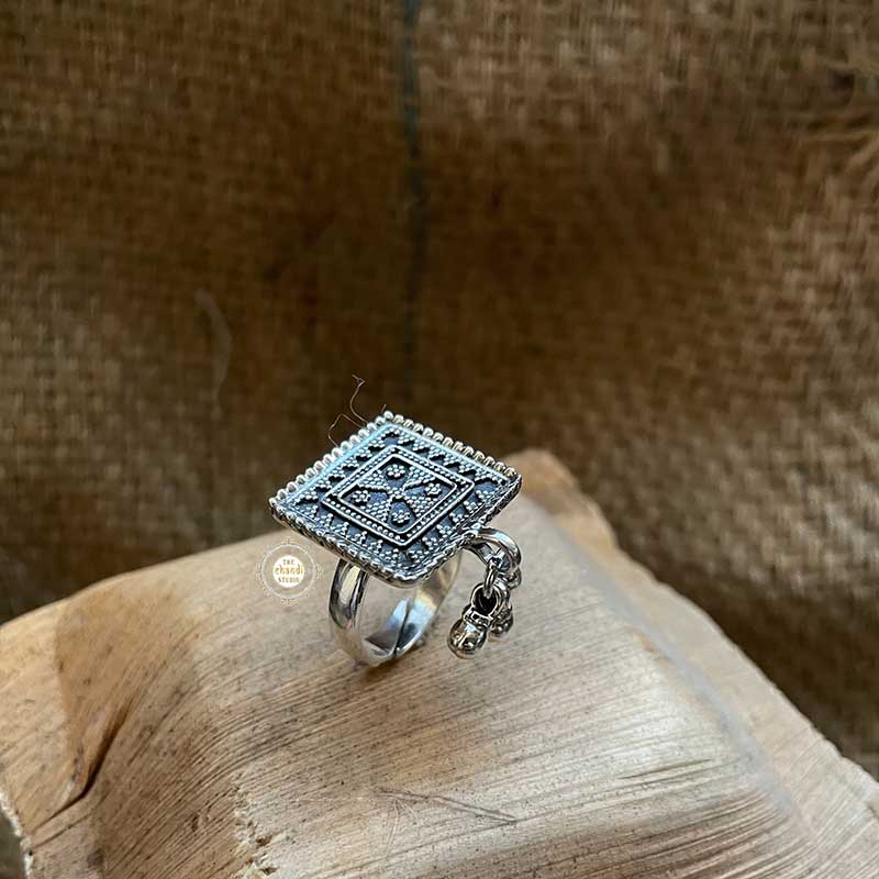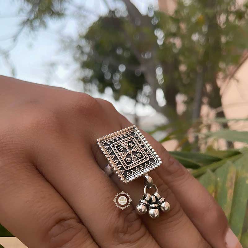 A stunner is all about maximum impact with minimum effort. Adorn your finger with this unique ring having intricate rawa work, your favorite ghungroos and impeccable details. SIZE : ADJUSTABLE
