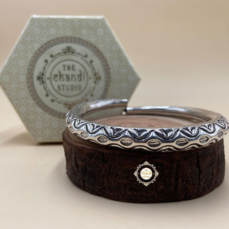 Utsav Leg Kada Utsav Leg Kada is a traditional Indian ankle accessory. There is always a different kind of attraction in things that are sonorous. Inspired by the ancient kadas worn by women to adore their feet, these beautifully carved anklet kadas are manifested in silver to give their hardworking feet a regal touch with colors of elegance. The mesmerizing memories of going through the festivities in this kadas will always make you like them, a bit more. And smile a lot more. MATERIAL : STERLING SILVER 92.5