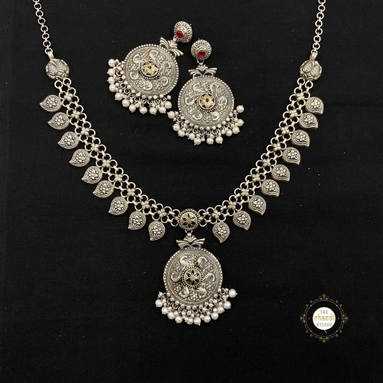 The Utsav Paisley Meenakari Necklace Set showcases vibrant meenakari work with a stunning paisley design. Perfect for festive celebrations, this exquisite set adds a touch of elegance to traditional attire.