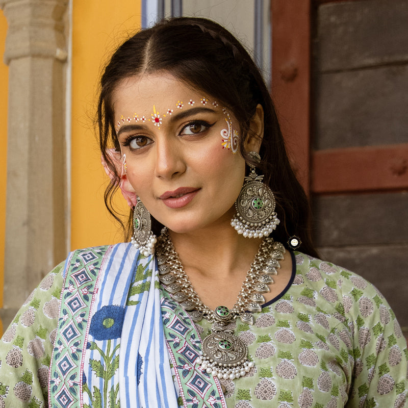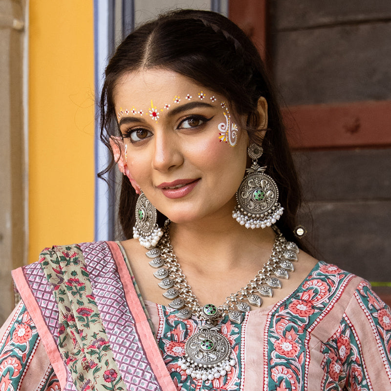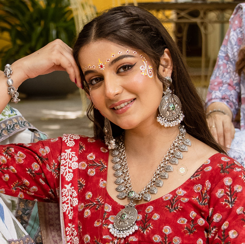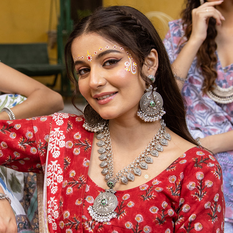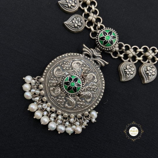 The Utsav Paisley Meenakari Necklace Set showcases vibrant meenakari work with a stunning paisley design. Perfect for festive celebrations, this exquisite set adds a touch of elegance to traditional attire.