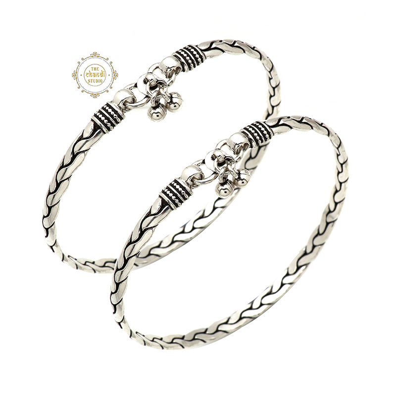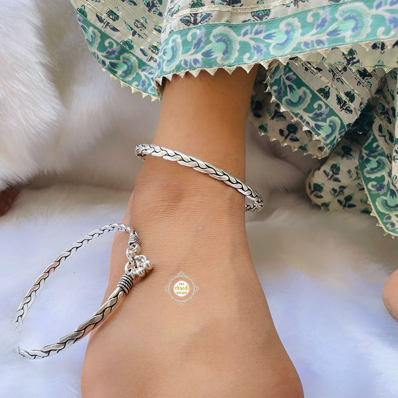 Utsav Rope Kada Anklet This gorgeous sturdy anklet is made up of three chains that interlink & entwine each other to become one sturdy rope chain. Subtle & sophisticated.   Material – Sterling Silver 925
