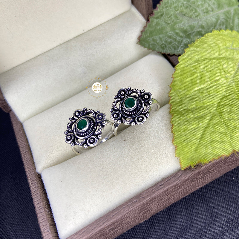 "Elevate your style with the enchanting Utsav Stone Toe Ring – a fusion of tradition and contemporary elegance. Immerse yourself in the celebration of beauty and culture with this exquisite toe ring, meticulously crafted to capture the essence of festivity. * Price mentioned is for a pair.