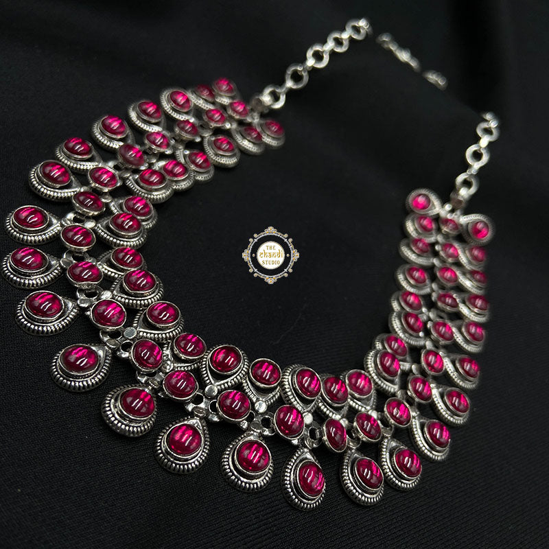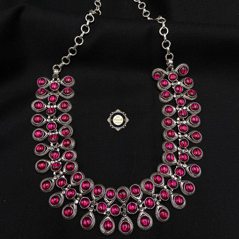Kundan jewellery is mesmerizing and a real joy for Indian women. Of all the Kundan jewellery pieces, its Kundan Necklace that lets the women to appreciate the detailed art and charm of this artwork. Magnificent Kundan art from the ancient Mughal period, this Versatile Kundan Ruby Necklace has been crafted with care and affection. It takes you towards modernity and minimalism. Sleek, elegant and sophisticated – this piece is your go-to Necklace if you love the Kundan craft.   MATERIAL : STERLING SILVER 92.5