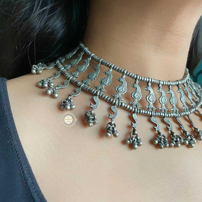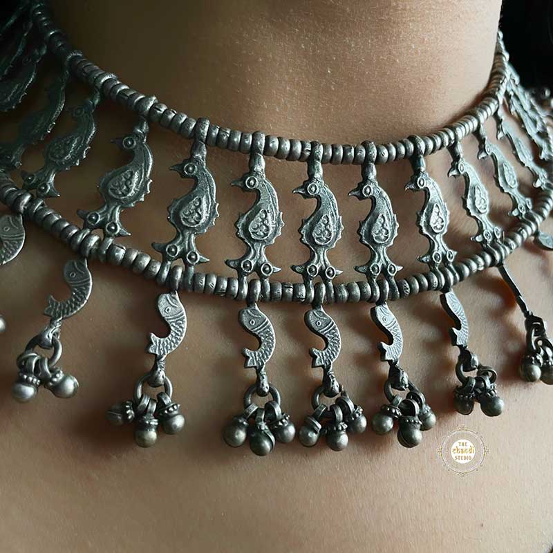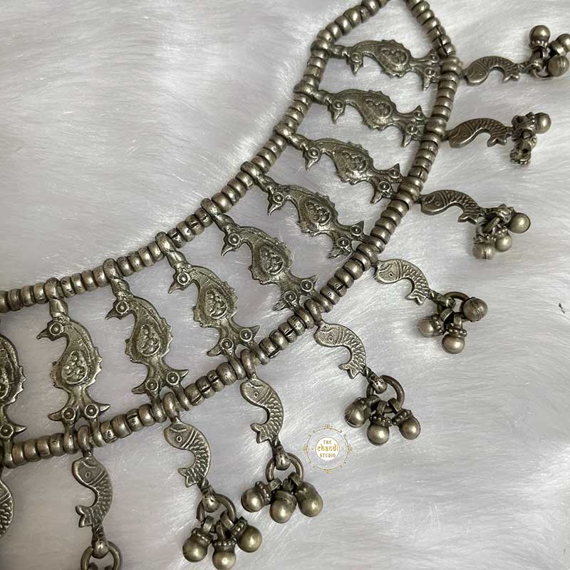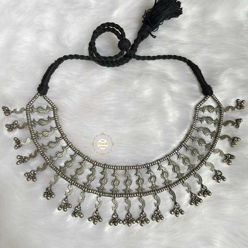 *60 percent purity (Old Silver). A vintage necklace that is designed to exude sophistication and elegance. Finished with an adjustable cotton thread.