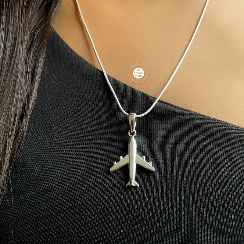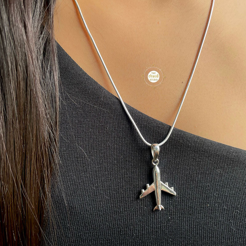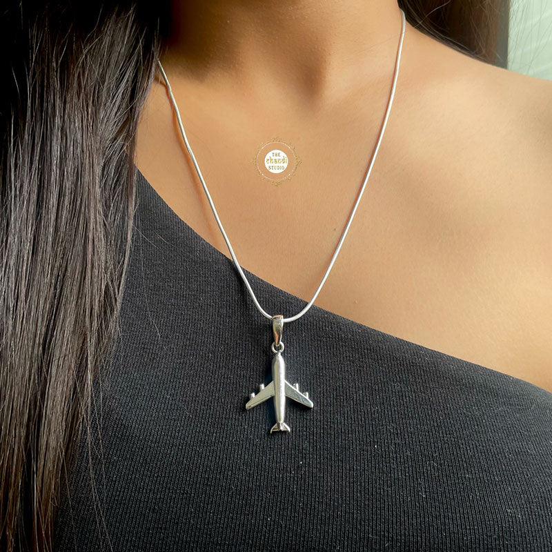 Set your spirit free with our Wanderlust Wings Pendant. Crafted from exquisite sterling silver, this pendant captures the essence of exploration and the desire to soar above the clouds. Let your dreams take flight and express your adventurous soul with this enchanting accessory. The pendant's lustrous silver finish adds a touch of elegance and versatility, making it suitable for both casual and formal occasions. Whether you're attending a social gathering or looking for a unique accessory to express your passion for aviation, this pendant is a perfect choice.   * MATERIAL – STERLING SILVER 92.5 * Price mentioned is only for the pendant.