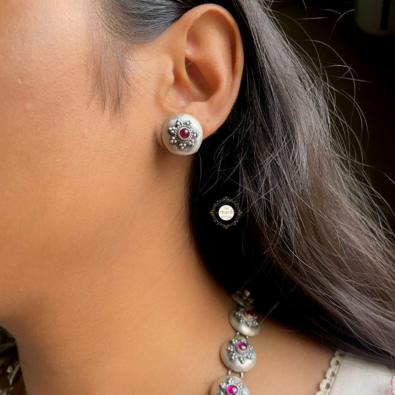 Do you get chills, every time you think about your smile? Come, fall in love with yourself and the confidence you get when you wear this You are my star Rawa Ruby Earring. Goes perfectly well with your Indian and Ethnic dresses but you can definitely try it out with a cold shoulder top and ankle jeans! Be quirky, be you! MATERIAL : STERLING SILVER 92.5