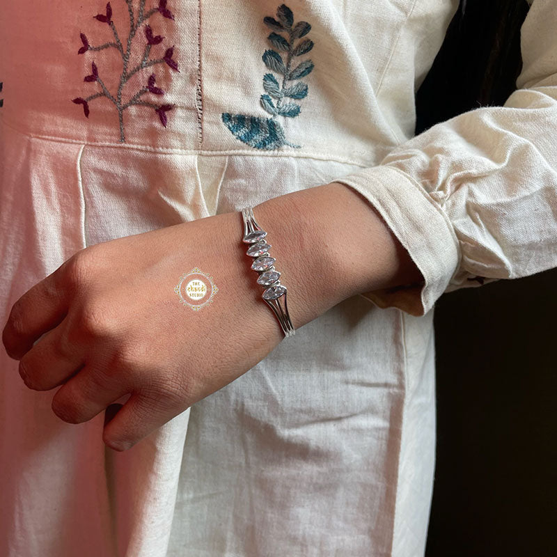 Zircon Bracelet   Bracelets that are bound to make your wrist look beautiful 🙌🏻 From work to weekends & everything in between with this 🙂 *The price mentioned is for single piece only MATERIAL – STERLING SILVER 92.5